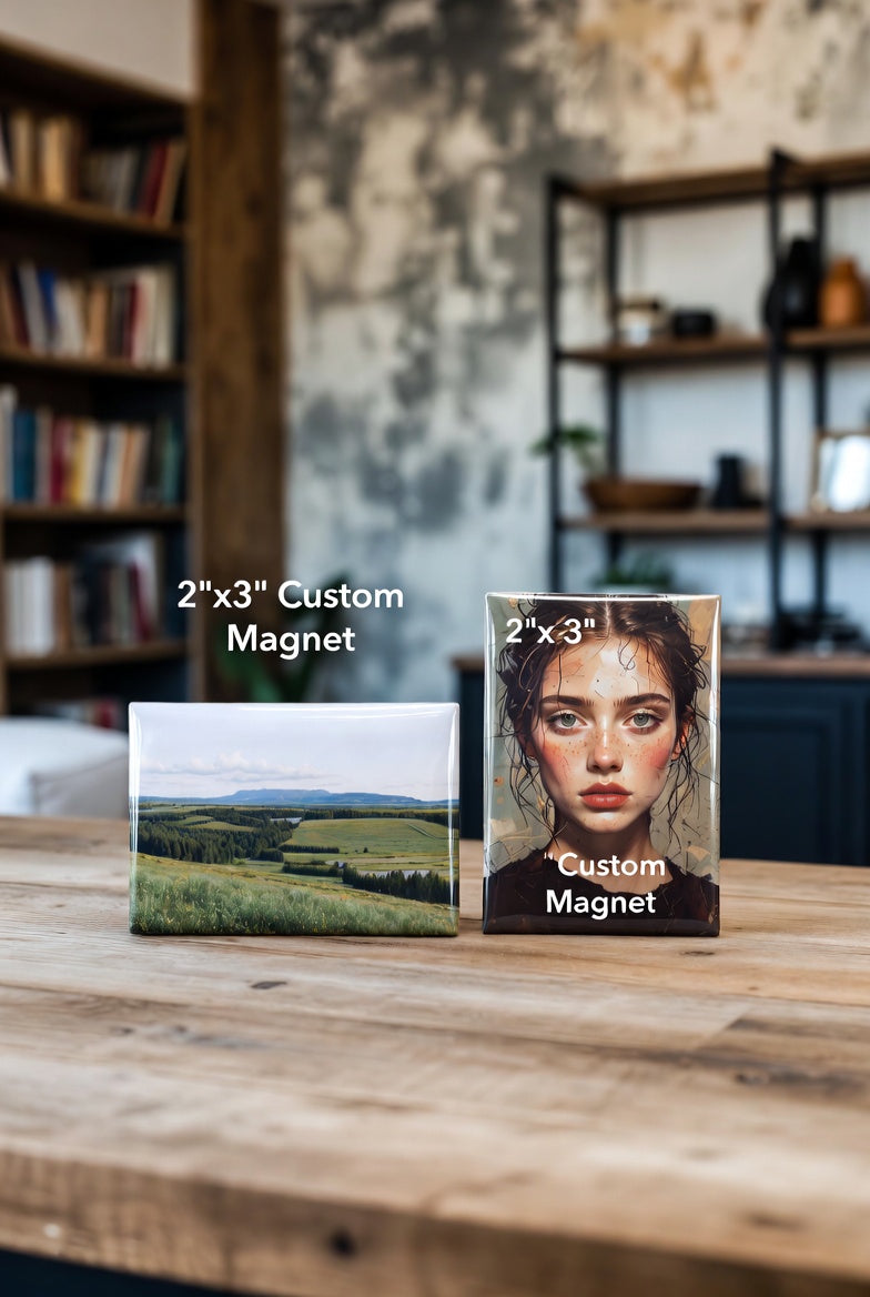 Our 2" x 3" / 3" x 2"magnets are thoughtfully designed to bring warmth and personality to any space. Each magnet features unique artwork printed with rich, vibrant color and sealed with a smooth, protective finish. Whether you're displaying a favorite photo, holding up notes on the fridge, or adding charm to your office, these magnets are made to stand out.